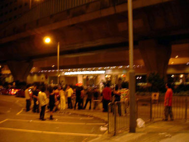 der Strasse vor dem Eingang war High Live. Viele Leute standen auf der Strasse